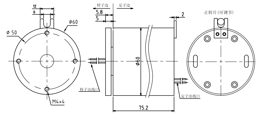 緊定螺絲固定。定子部分通過止轉(zhuǎn)片與設(shè)備固定部位連接。 |
