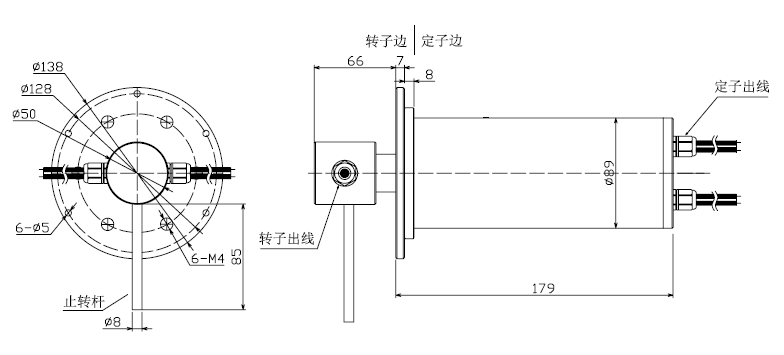 緊定螺絲固定。定子部分通過止轉(zhuǎn)片與設(shè)備固定部位連接。 |
